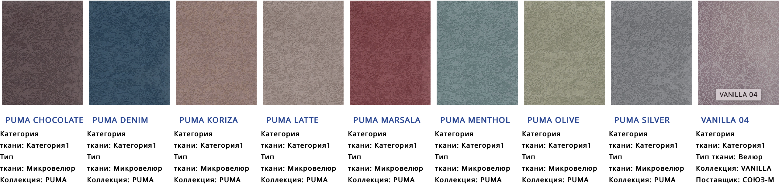 - Цвет: Ткань на выбор